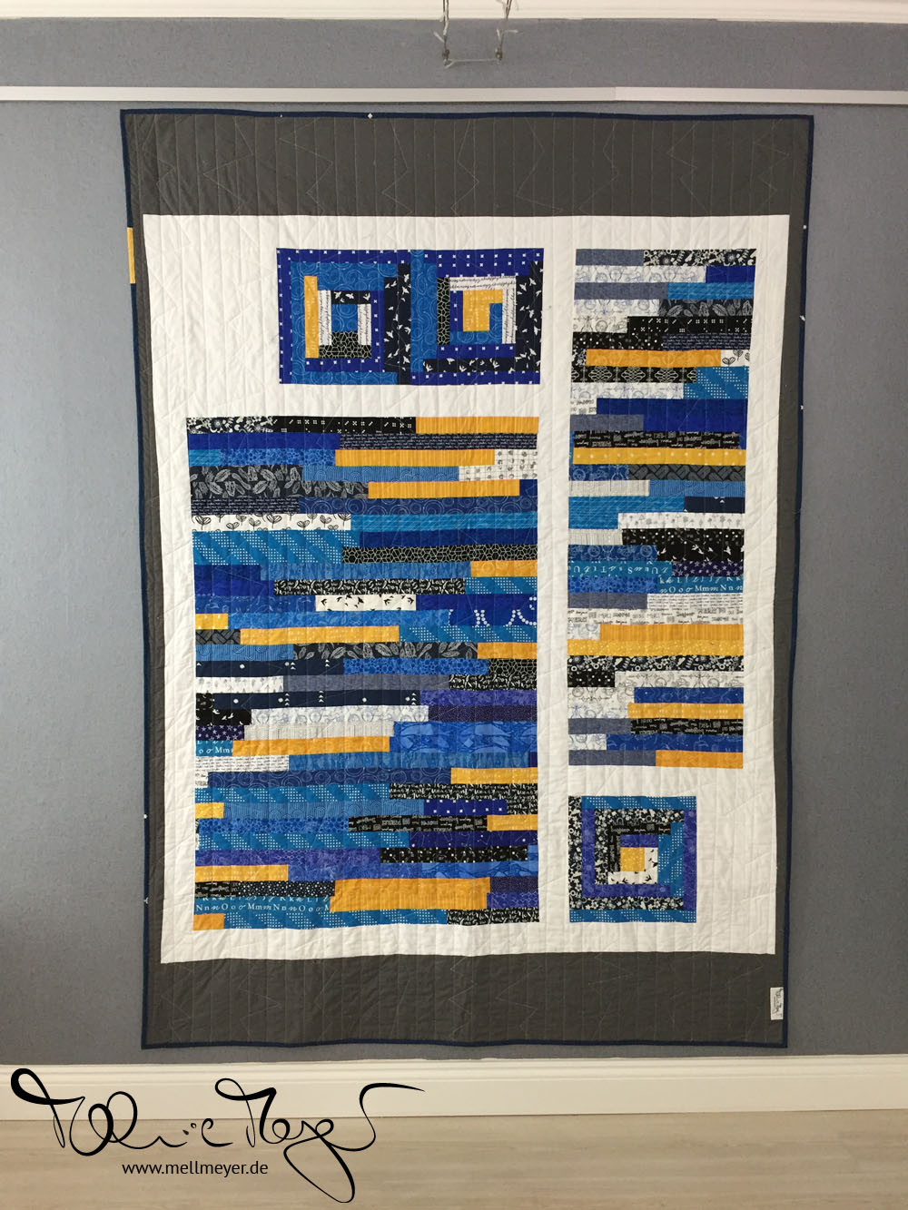 The lone block on the bottom of the backing is a left over bee block that unfortunately didn’t fit style wise to the front. And no, the bee was not in fault, I send her wrong fabrics … Sometimes you just see that after you puzzle it all together.