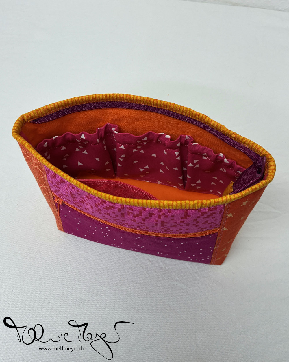 I picked the Oleander Pouch from @sotakhandmade. It is a fairly big pouch with three different pockets. One zippered on the outside/front, two on the inside – one a slip pocket, one a divided elastic pocket with three compartments. It reminds me of a toiletry bag – though I am sure you could as well sort sewing supplies or other items.
